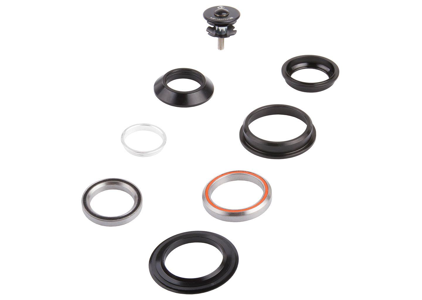 M-WAVE, Steuersätze, Carousel HS Mix, semi-integriert, 1 1/8��-1,5��, schwarz, aus Stahl, 28.6mm Innendurchmesser des oberen Abschlussrings, 44mm Außendurchmesser des oberen Kugellagers, 56mm Außendurchmesser des unteren Kugellagers, 39.8mm Konussitz auf Gabel